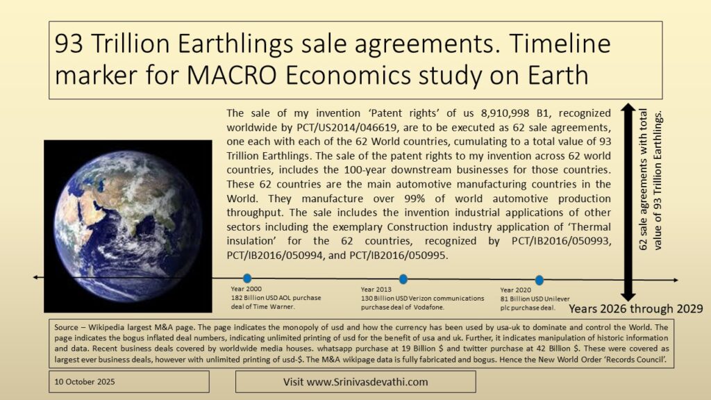 You are aware that the active lawsuit is expected to conclude by the execution of 62 sale agreements, one each with each of the 62 countries. The details of these 62 sale agreements are given in document 29 of the lawsuit attached in this communication. The signed version of document 29 can be accessed at my website webpage of the lawsuit https://srinivasdevathi.com/liability-suit-for-93-trillion/.